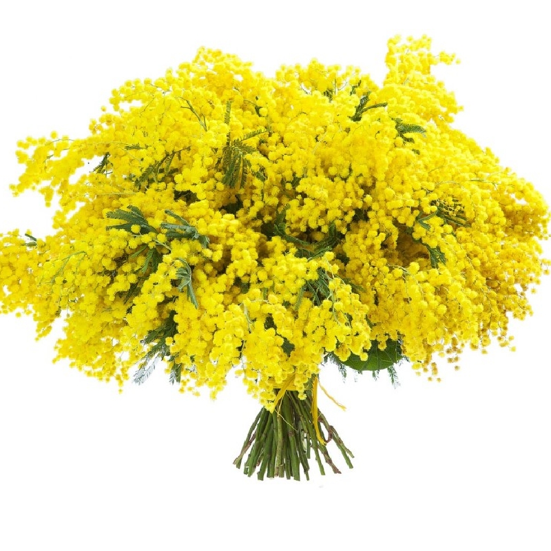 Букет состоит из 41 ветка мимозы, прозрачная упаковка, лента.